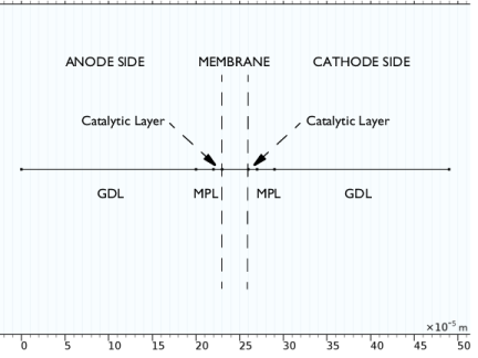 In the Model Builder window, under Component 1 (comp1) > Hydrogen Fuel Cell (fc) click H2 Gas Diffusion Layer 1.