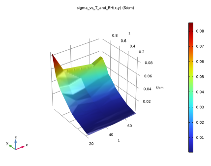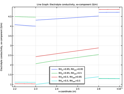 Click Replace Expression in the upper-right corner of the y-Axis Data section. From the menu, choose Component 1 (comp1) > Hydrogen Fuel Cell > Electrolyte conductivity - S/m > fc.sigmalxx - Electrolyte conductivity, xx-component.