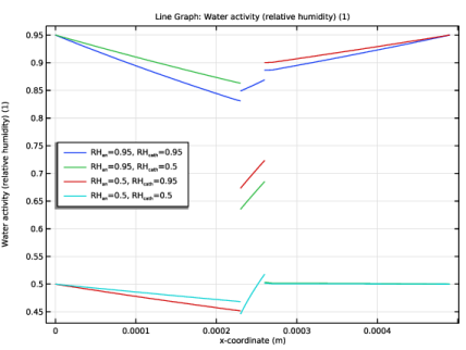 In the Model Builder window, expand the Water Activity (Relative Humidity) (fc) node, then click Line Graph 1.