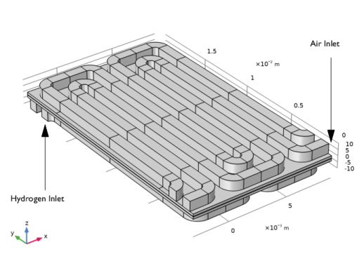 Browse to the model’s Application Libraries folder and double-click the file pemfc_serpentine_flow_field_geom_sequence.mph.