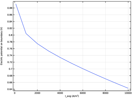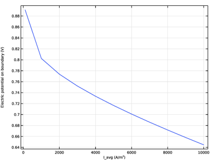 In the Settings window for Global, click Replace Expression in the upper-right corner of the y-Axis Data section. From the menu, choose Component 1 (comp1) > Hydrogen Fuel Cell > fc.phis0_ec1 - Electric potential on boundary - V.