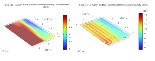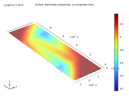 In the Settings window for Surface, click Replace Expression in the upper-right corner of the Expression section. From the menu, choose Component 1 (comp1) > Hydrogen Fuel Cell > Electrolyte conductivity - S/m > fc.sigmalzz - Electrolyte conductivity, zz-component.