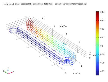 In the Model Builder window, expand the Mole Fraction, H2, Streamline (fc) node, then click Streamline 1.