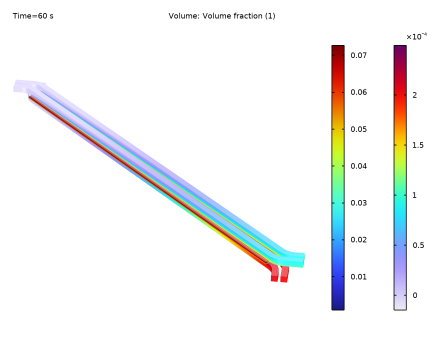In the Model Builder window, under Results, Ctrl-click to select Volume Fraction (phtr) and Volume Fraction (phtr) 1.