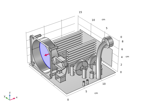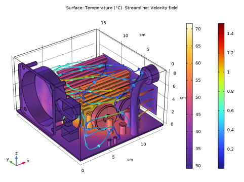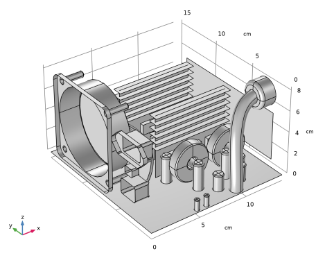 In the Application Libraries window, select Heat Transfer Module > Power Electronics and Electronic Cooling > electronic_enclosure_cooling_geom in the tree.