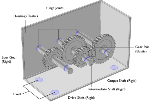 All the gears are assumed rigid. The elasticity of a gear mesh can be included on Gear Pair nodes using the Gear Elasticity subnode.