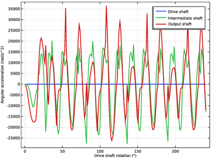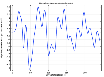 In the Model Builder window, expand the Angular Velocity 1 node, then click Results > Angular Acceleration > Global 1.