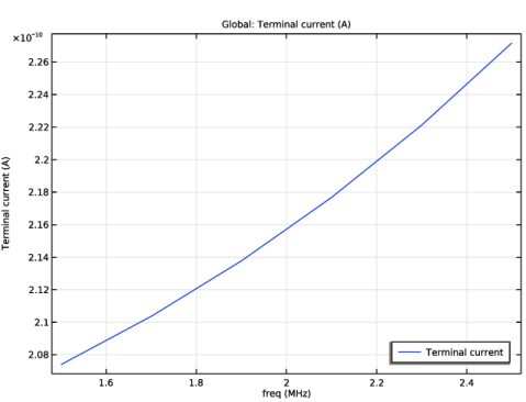 In the Settings window for 1D Plot Group, type Terminal Current vs. Frequency in the Label text field.
