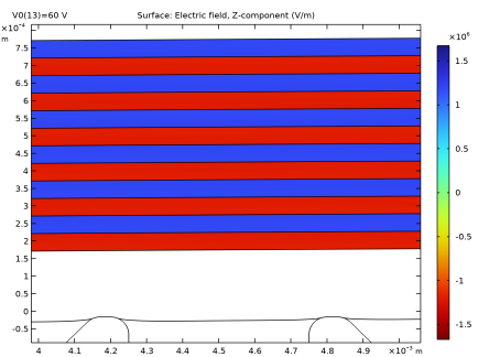 Click Replace Expression in the upper-right corner of the Expression section. From the menu, choose Component 1 (comp1) > Electrostatics > Electric > Electric field (material and geometry frames) - V/m > es.EZ - Electric field, Z-component.
