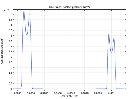 In the Settings window for Line Graph, click Replace Expression in the upper-right corner of the y-Axis Data section. From the menu, choose Component 1 (comp1) > Solid Mechanics > Contact > solid.Tn - Contact pressure - N/m².