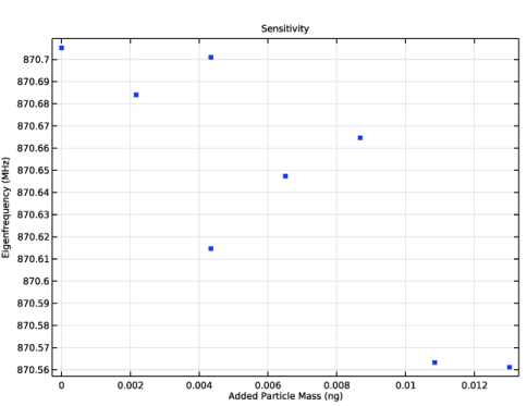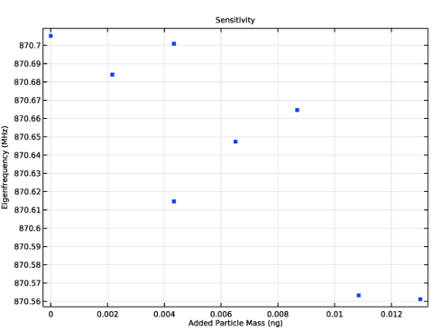 In the Model Builder window, under Study 1 - Eigenfrequency & Sensitivity click Step 1: Eigenfrequency.