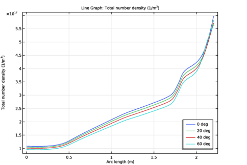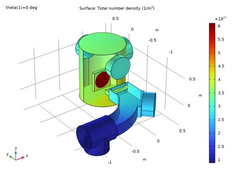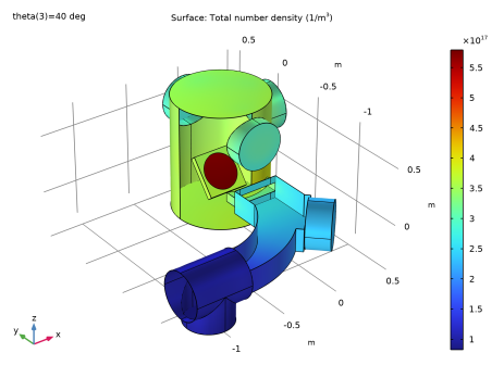 Click Replace Expression in the upper-right corner of the y-Axis Data section. From the menu, choose Component 1 (comp1) > Free Molecular Flow > Number density > fmf.ntot - Total number density - 1/m³.