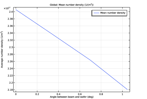In the Settings window for 1D Plot Group, type Average Number Density vs. Wafer Angle in the Label text field.