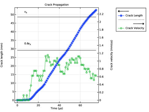 In the table, select the Plot on secondary y-axis checkboxes for Crack Velocity, Rayleigh Wave Speed, and Table Annotation 1.