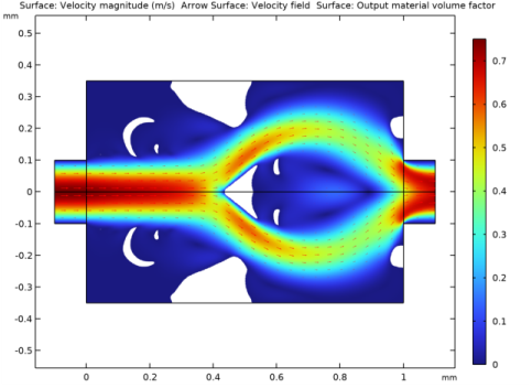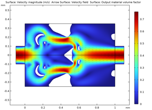 In the Model Builder window, under Results, Ctrl-click to select Forward Flow, Pressure (spf), Backward Flow, Pressure (spf2), and Topology.