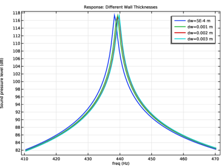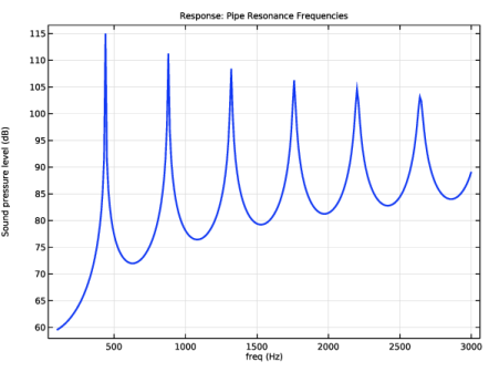 In the Settings window for Point Graph, click Replace Expression in the upper-right corner of the y-Axis Data section. From the menu, choose Component 1 (comp1) > Pipe Acoustics, Frequency Domain > Intensity and sound pressure level > pafd.Lp - Sound pressure level - dB.