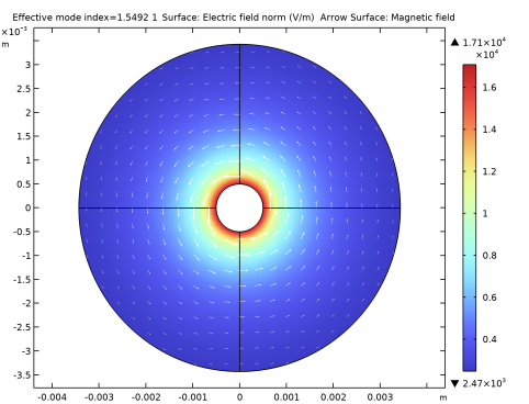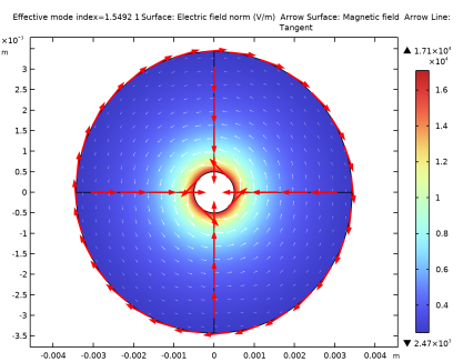 In the Settings window for Arrow Line, click Replace Expression in the upper-right corner of the Expression section. From the menu, choose Component 1 (comp1) > Geometry > tx,ty - Tangent.