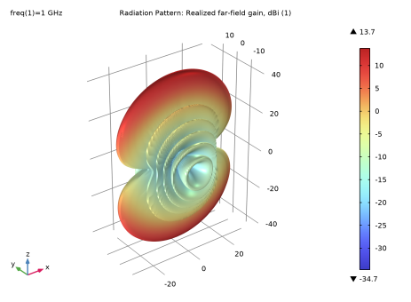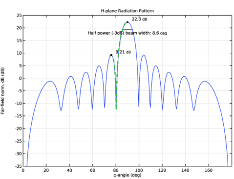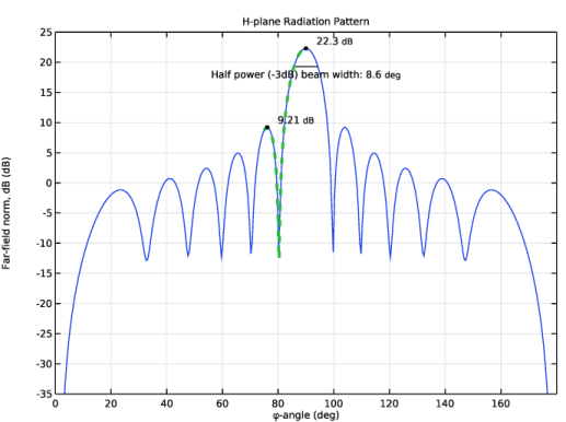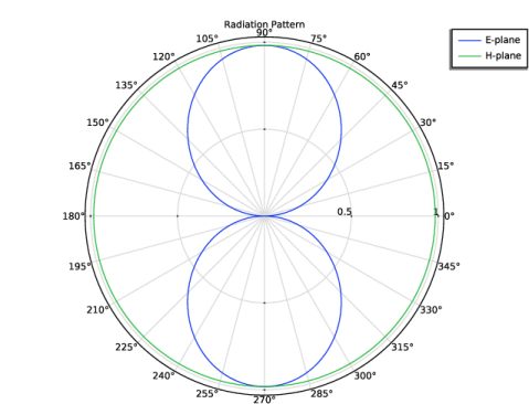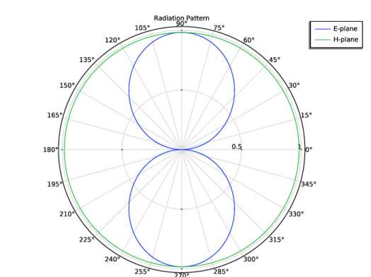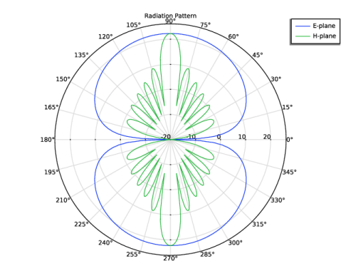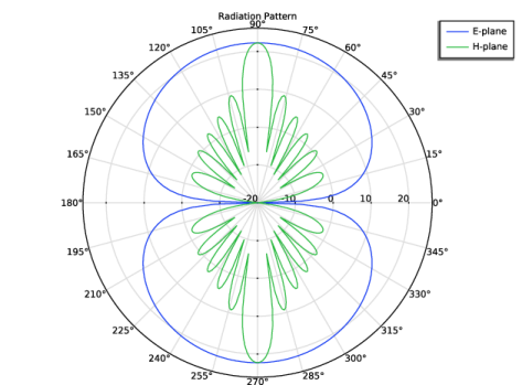 In the Model Builder window, under Results > 2D Far-Field, Dipole Array, H-Plane right-click Radiation Pattern 1 and choose Duplicate.