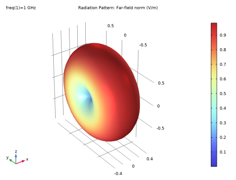 In the Model Builder window, expand the Results > 2D Far Field (embe) node, then click Radiation Pattern 1.