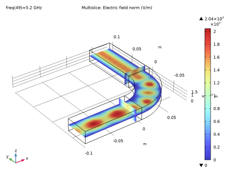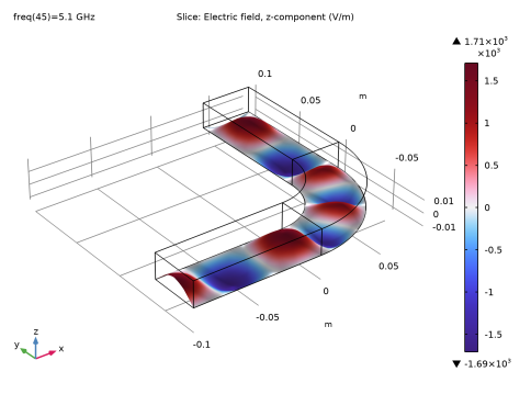 In the Settings window for Slice, click Replace Expression in the upper-right corner of the Expression section. From the menu, choose Component 1 (comp1) > Electromagnetic Waves, Frequency Domain > Electric > Electric field - V/m > emw.Ez - Electric field, z-component.