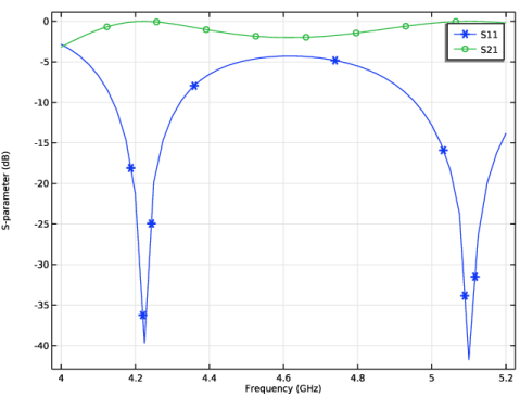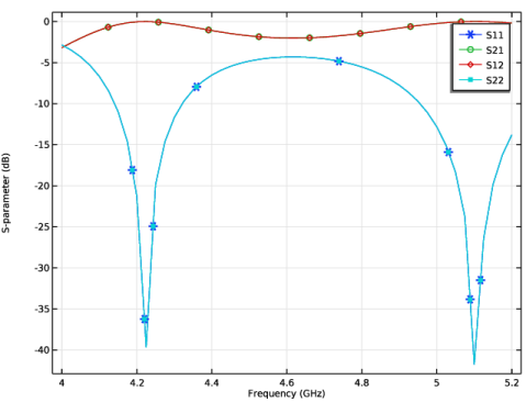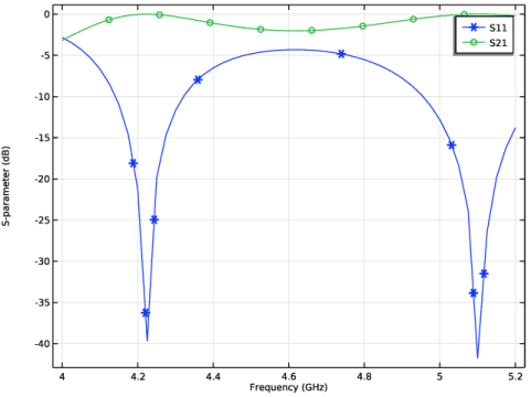 Click Add Expression in the upper-right corner of the y-Axis Data section. From the menu, choose Component 1 (comp1) > Electromagnetic Waves, Frequency Domain > Ports > S-parameter, dB > emw.S22dB - S22.