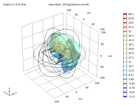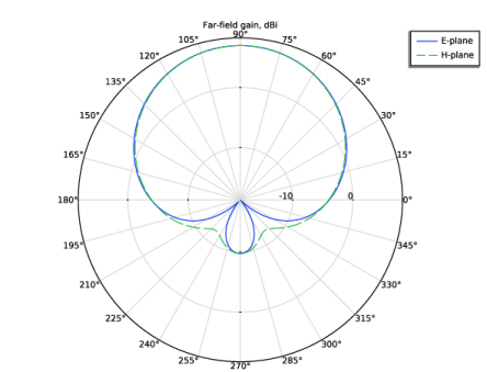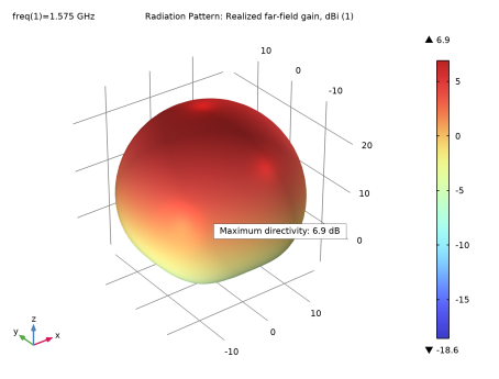 In the Settings window for Radiation Pattern, click Replace Expression in the upper-right corner of the Expression section. From the menu, choose Component 1 (comp1) > Electromagnetic Waves, Frequency Domain > Far field > emw.gaindBEfar - Far-field gain, dBi - 1.