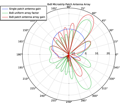 The radiation pattern of the uniform array factor configured to have the maximum radiation at 60 degrees from the x-axis by setting the value of alphax as in Table 2.