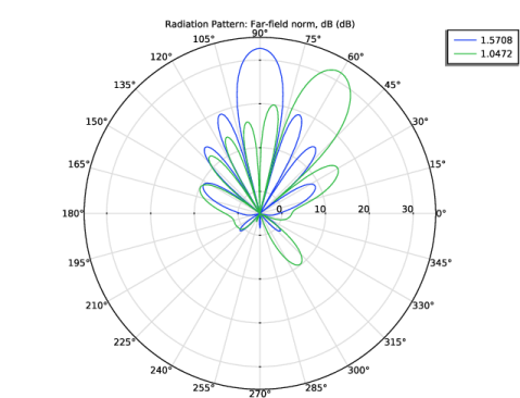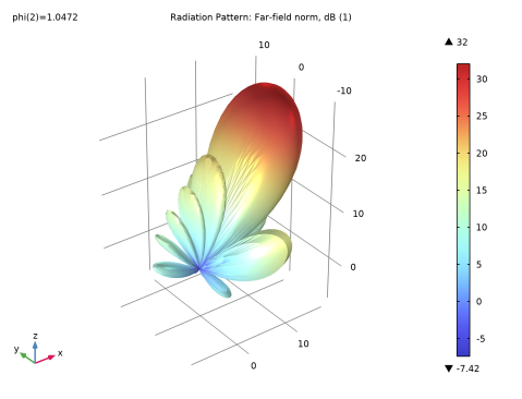 In the Model Builder window, expand the Results > 2D Far Field (emw) node, then click Radiation Pattern 1.