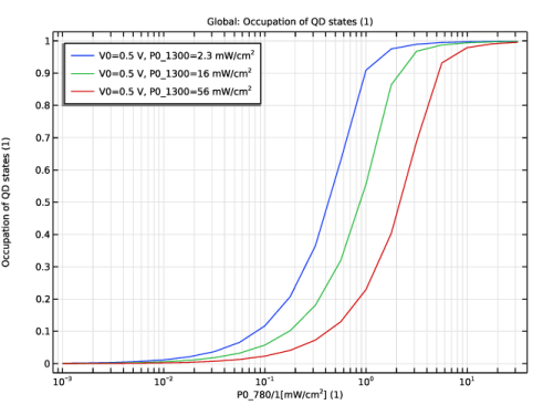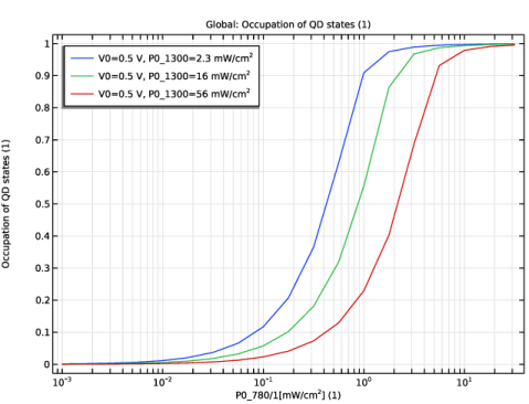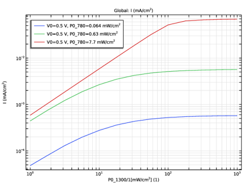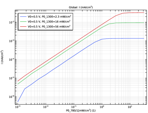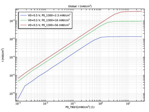 In the Model Builder window, expand the Study 1 - ramp V0 from 0 to 0.5 V, no light > Solver Configurations > Solution 1 (sol1) > Stationary Solver 1 node, then click Fully Coupled 1.