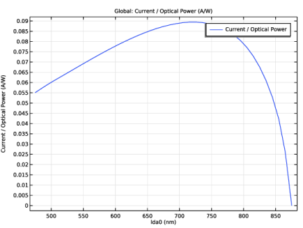 In the Settings window for 1D Plot Group, type Current as a function of wavelength in the Label text field.