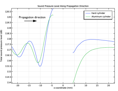 Click Replace Expression in the upper-right corner of the y-Axis Data section. From the menu, choose Component 1 (comp1) > Pressure Acoustics, Frequency Domain > Pressure and sound pressure level > acpr.Lp_t - Total sound pressure level - dB.