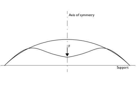 The radius of the spherical cap is a = 10 m and the thickness is th = 0.20384 m. The sector angle of the spherical cap is π/4 radians.