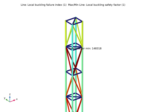 In the Settings window for Max/Min Line, click Replace Expression in the upper-right corner of the Expression section. From the menu, choose Component 1 (comp1) > Truss > Safety > Local buckling > truss.lbs_f - Local buckling safety factor - 1.
