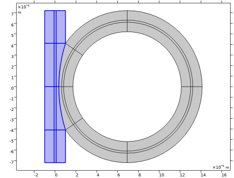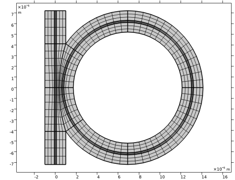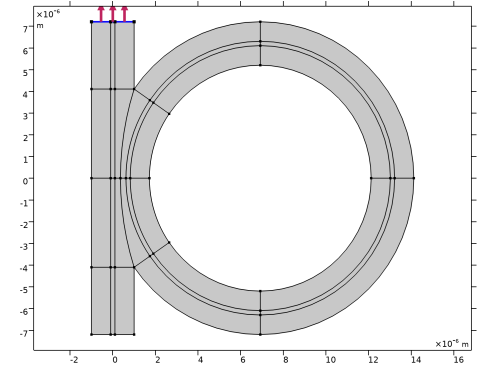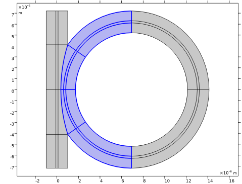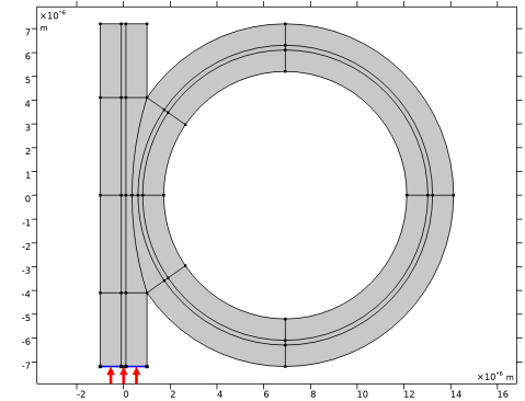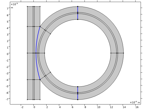 In the Model Builder window, under Component 1 (comp1) > Geometry 1 click Slab Waveguide Straight-to-Ring Coupler 1 (pi1).