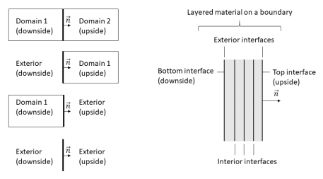 Interface Selection. Selections there interact with the standard selections of geometrical objects (boundaries and edges) in order to provide a complete specification of where a material property or boundary condition is to be applied within a layered material.