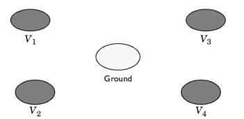 Figure 3-2: A five-electrode system with 4 terminals and one ground electrode.