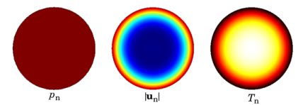 The Circular (0,0)-mode port option is used for waveguides of circular cross section. The analytical mode is a plane-wave mode (0,0) given by a constant cross section pressure, no-slip condition for the velocity, and isothermal condition for the temperature. An example of the propagating mode shape in a cylindrical waveguide is seen below.