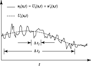 where ϕ can represent any scalar quantity of the flow. In general, the mean value can vary in space and time. This is exemplified in