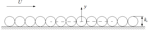 The roughness height, ks, is the peak-to-peak value of the surface variations and the wall is relocated to their mean level.