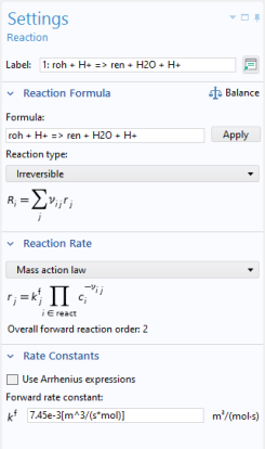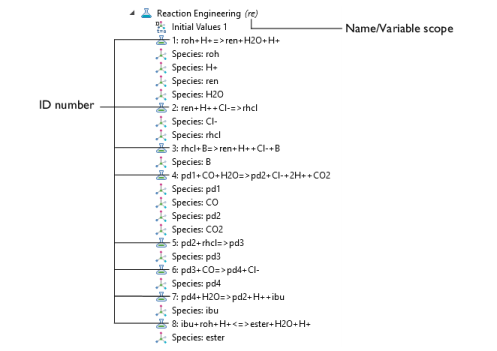When reaction formulas are entered, each reaction is associated with a unique ID (identification) number (Figure 2-2). The ID number is not a row number but rather an absolute reference number to a given reaction. This means that a reaction keeps its ID number, even if reactions are deleted with a lower number. Furthermore, constants and expressions within fields associated with a given reaction are also indexed with the reaction number.
