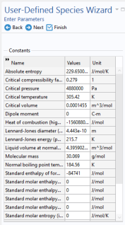 Use this table to define material constants such as molar mass, critical temperature, and standard enthalpy of formation.