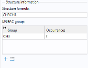 If you want to use the UNIFAC model, specify the structure formula, the UNIFAC groups and their number occurrences.