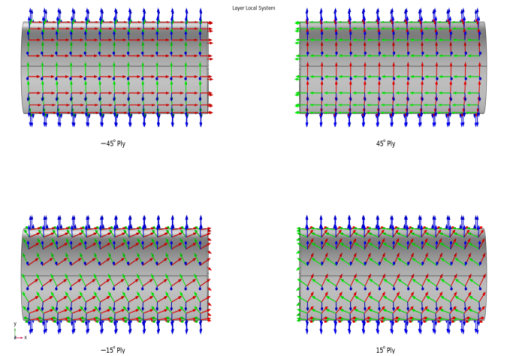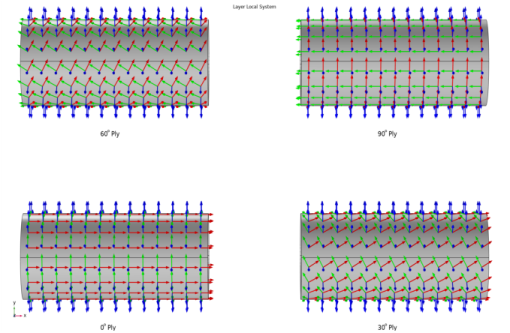 The stacking sequence of a composite laminate is [0/30/60/90]. The first axis of laminate coordinate system is aligned with the global