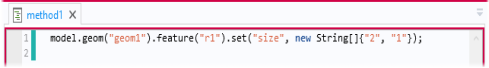 Code section (or press Ctrl+R again). The recorded code then appears directly in the Method Editor window. For example, if you update the size settings for a Rectangle geometry object, as in the following figure the recorded code for that action appears in the Method Editor window.