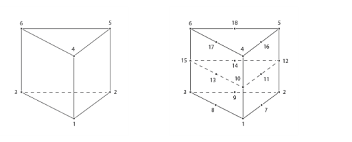 Prism element (prism) as a first-order element (left) and a second-order element (right):