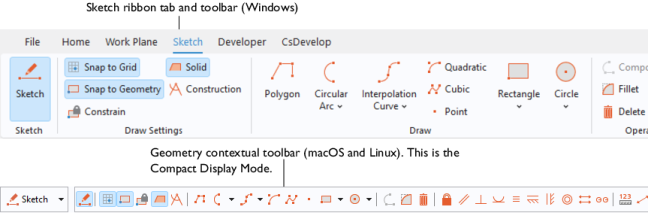 Draw a sequence of curve segments using the Polygon, Circular Arc, Interpolation Curve, Quadratic, and Cubic toolbar buttons.