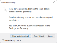The automatic cleanup is a fast track to clean up your model. You can run it if the geometry analysis detects small details in the geometry and prompts you how you want to do the cleaning.