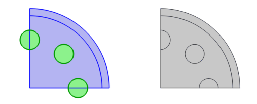 To create a geometry object without interior boundaries, clear the Keep interior boundaries checkbox. This can be useful to simplify a geometry where the interior boundaries do not separate domains with different physics nodes or materials, for example.