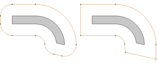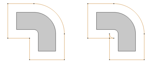 When offsetting edges of concave corners select the Trim intersections checkbox (selected by default) to trim the intruding parts of intersecting offset edges.