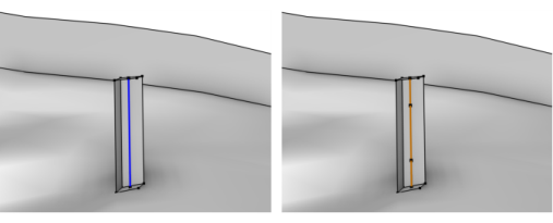 ) provides an operation that partitions selected edges at specified locations. You can specify the positions by entering parameters based on the arc length or by selecting existing vertices whose orthogonal projections on the edges specify the positions.
